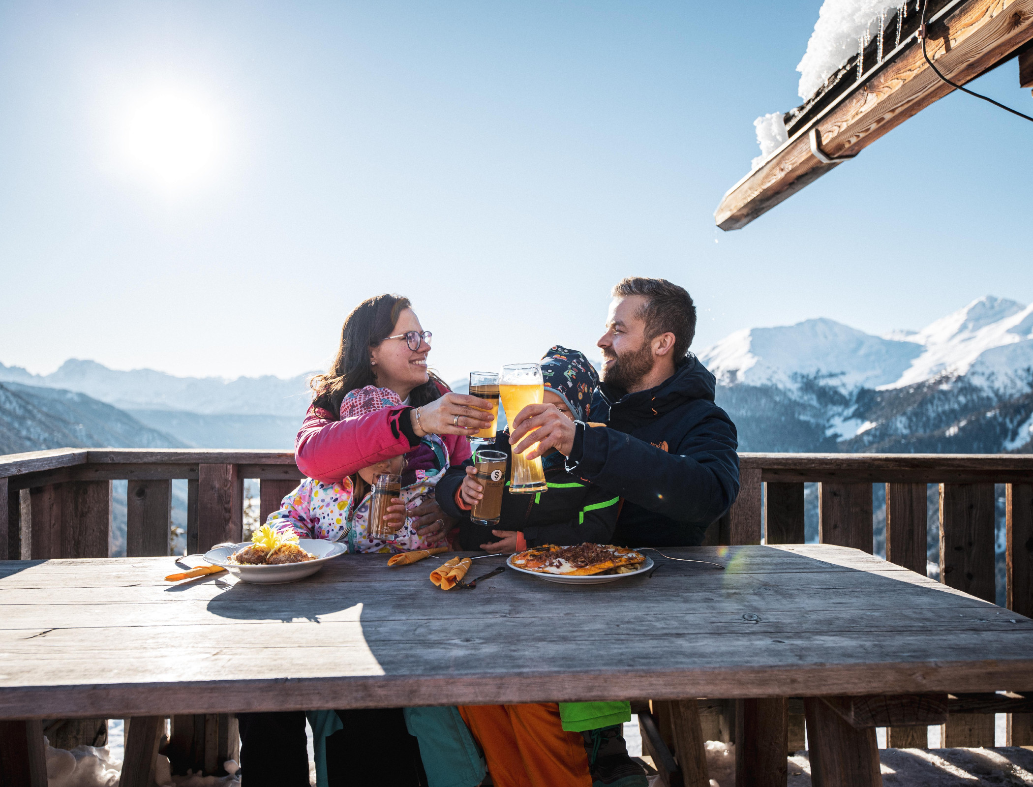 Feeling deep serenity. Water fun for the little ones. Time for two in the sauna, while snowflakes are gently falling. And a mountain panorama in the heated sky pool.